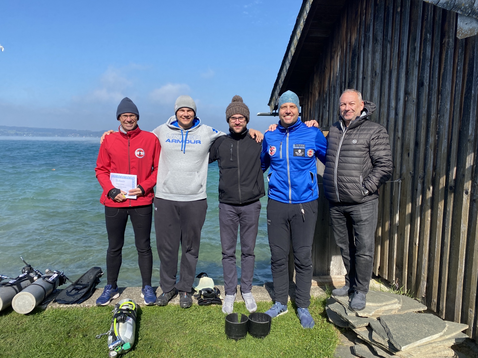 Der Kurs wurde vom Leiter der technischen Kommission TSVÖ Josef Bruckner gemeinsam mit Helmut Weiss (VP Finanzen TSVÖ) in Weyregg am Attersee abgehalten und bot spannende Inhalte zum Thema „Tauchen mit Best Mix bis in eine Tiefe von 40 m und Dekompression mit Nitrox und reinem Sauerstoff außerhalb der Nullzeit“ also länger und tiefer Tauchen außerhalb der Sporttauchgrenzen, technische Skills mit Stage (Flossenschläge, Stage-Handling, usw.). Mit an Bord waren die üblichen Verdächtigen Philipp Leister, Tobias und Peter Reinisch sowie Daniel Haspel aus Vorarlberg.